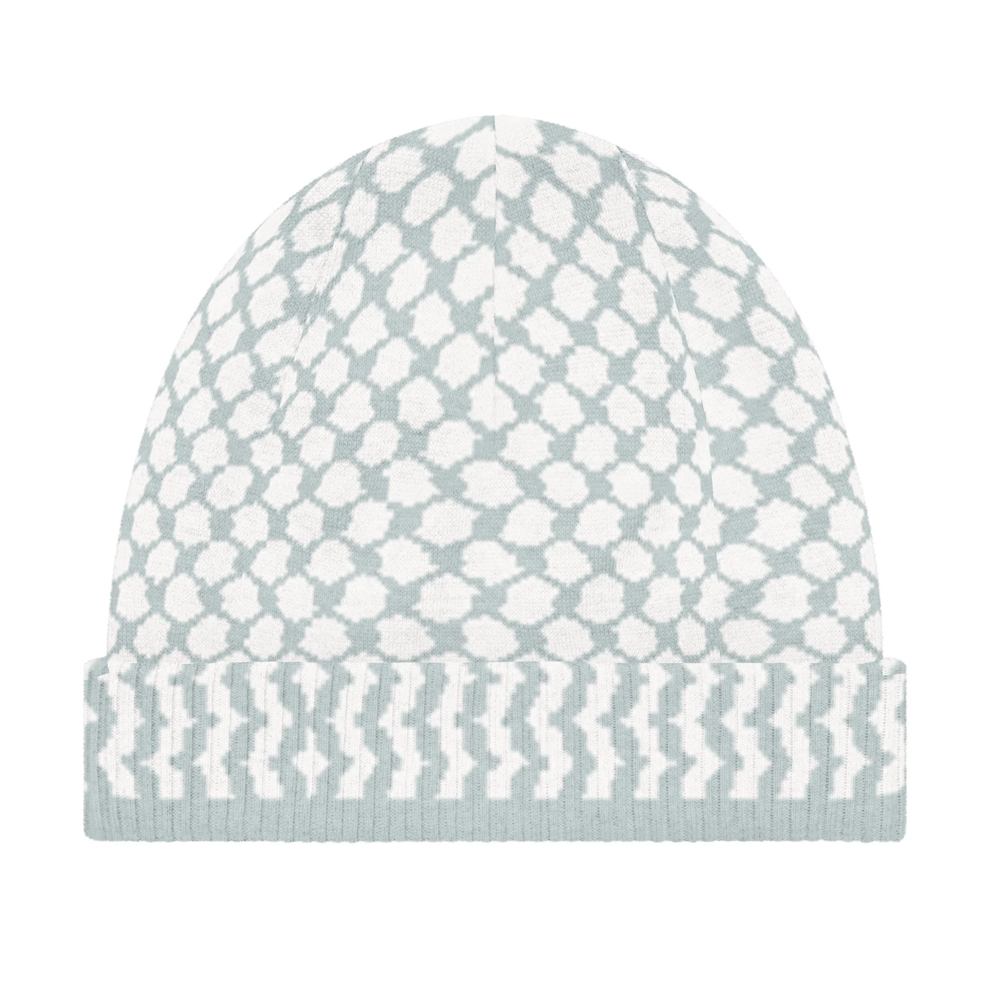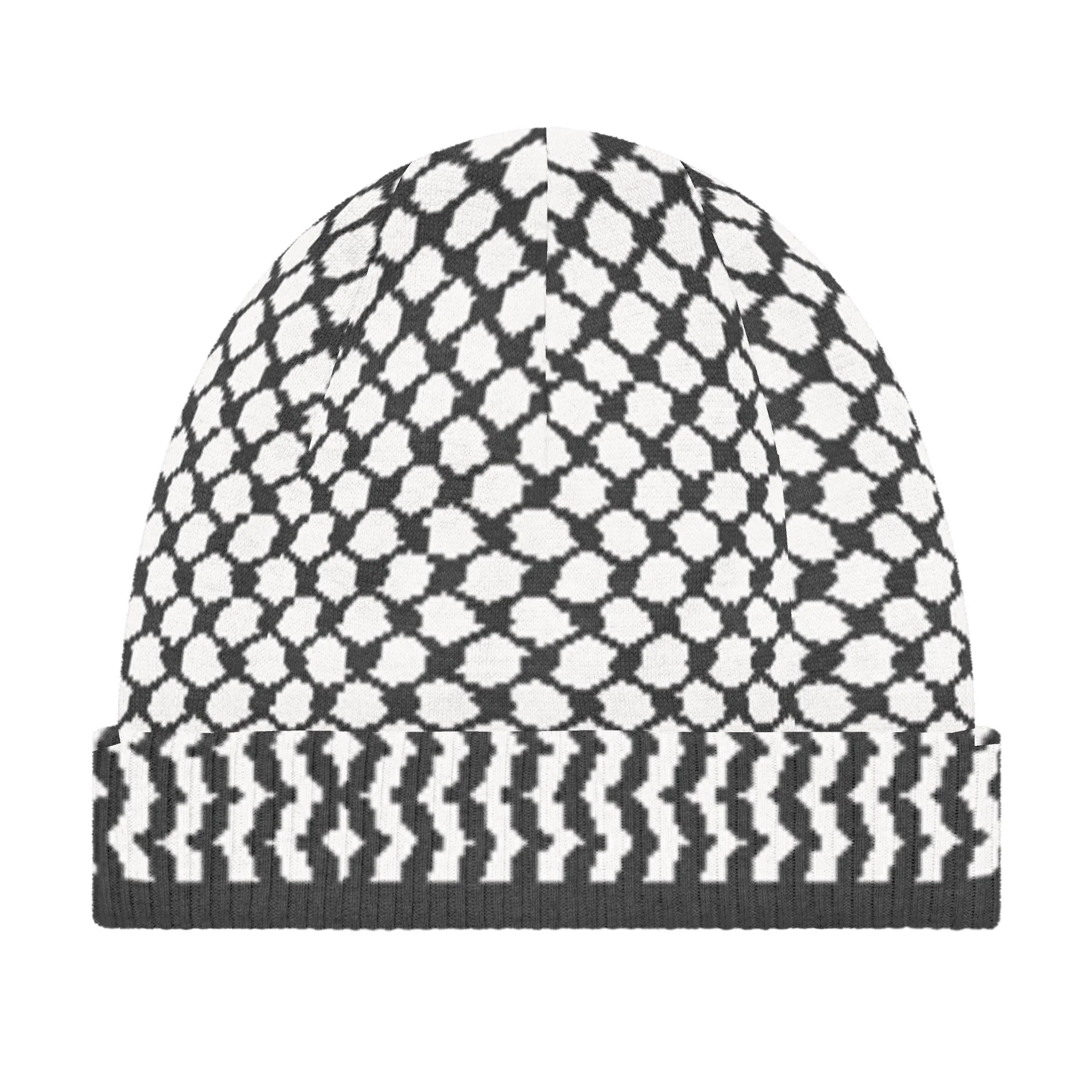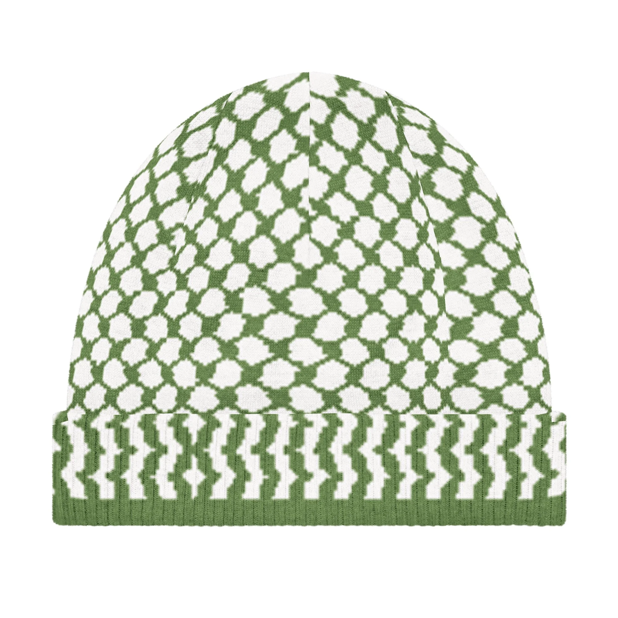The patterns of a traditional Palestinian headscarf have meaning. The fishnet pattern stands for a connection with the sea, the olive leaves stand for wealth and economy from, among other things olives, and the lines stand for the historical trade route going through Palestine.