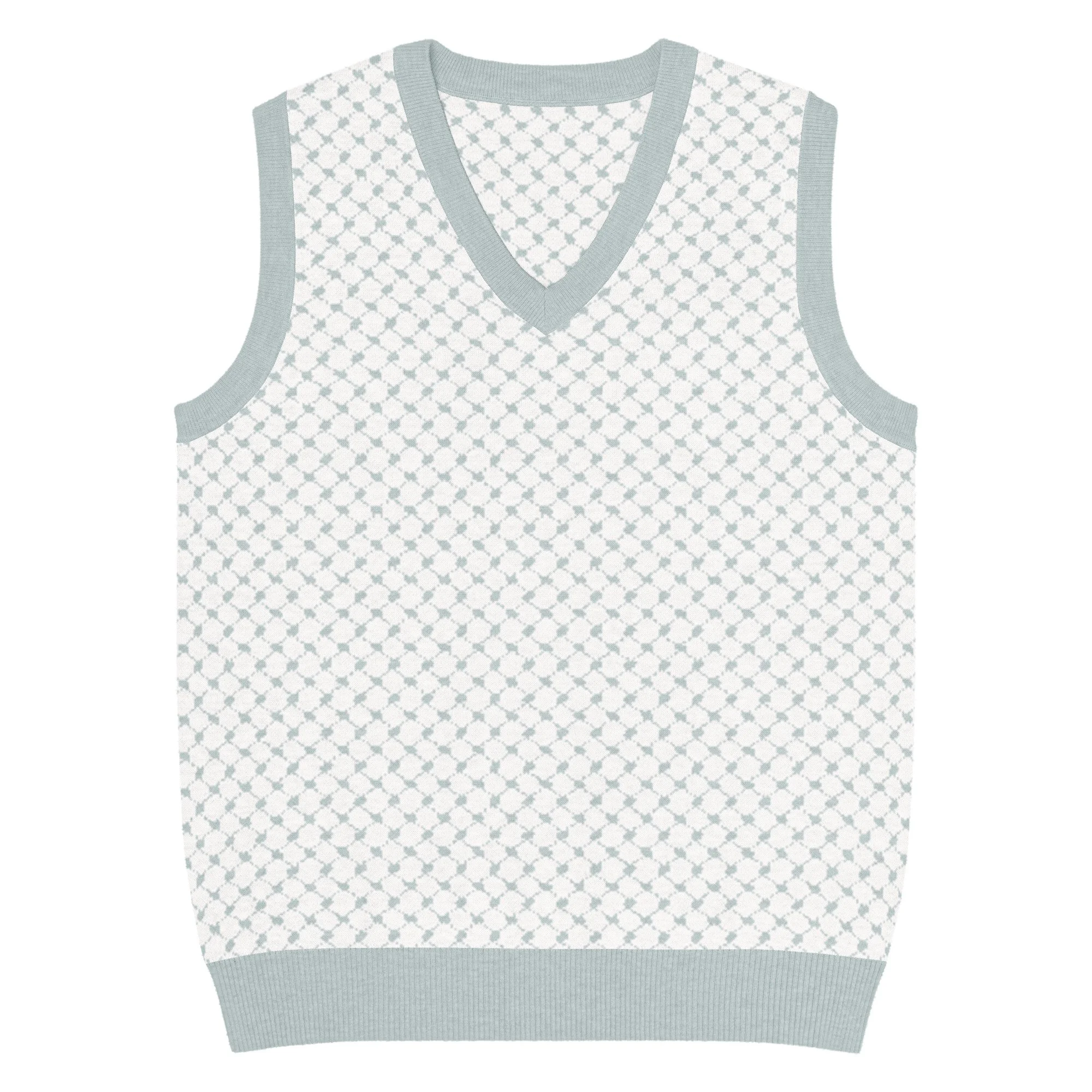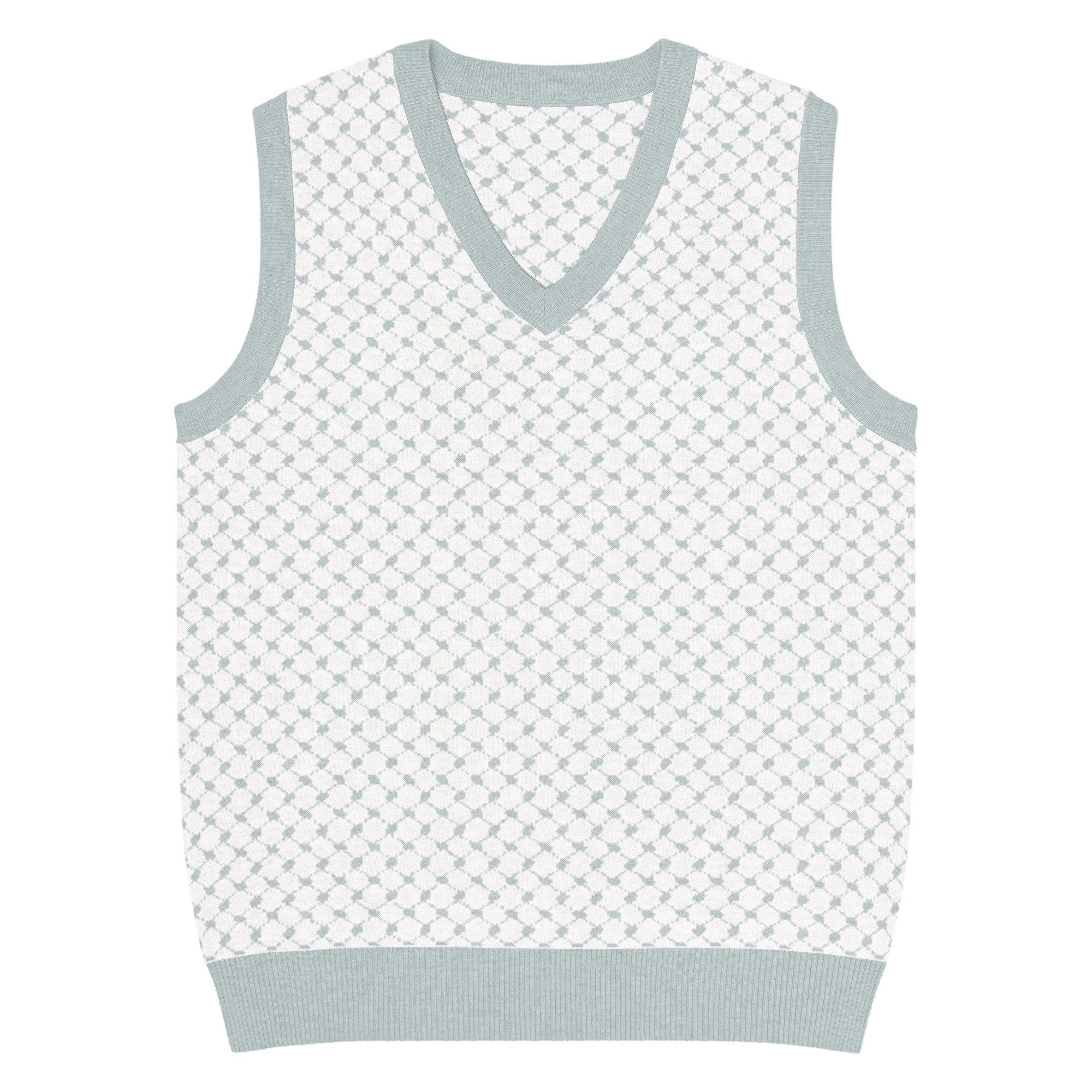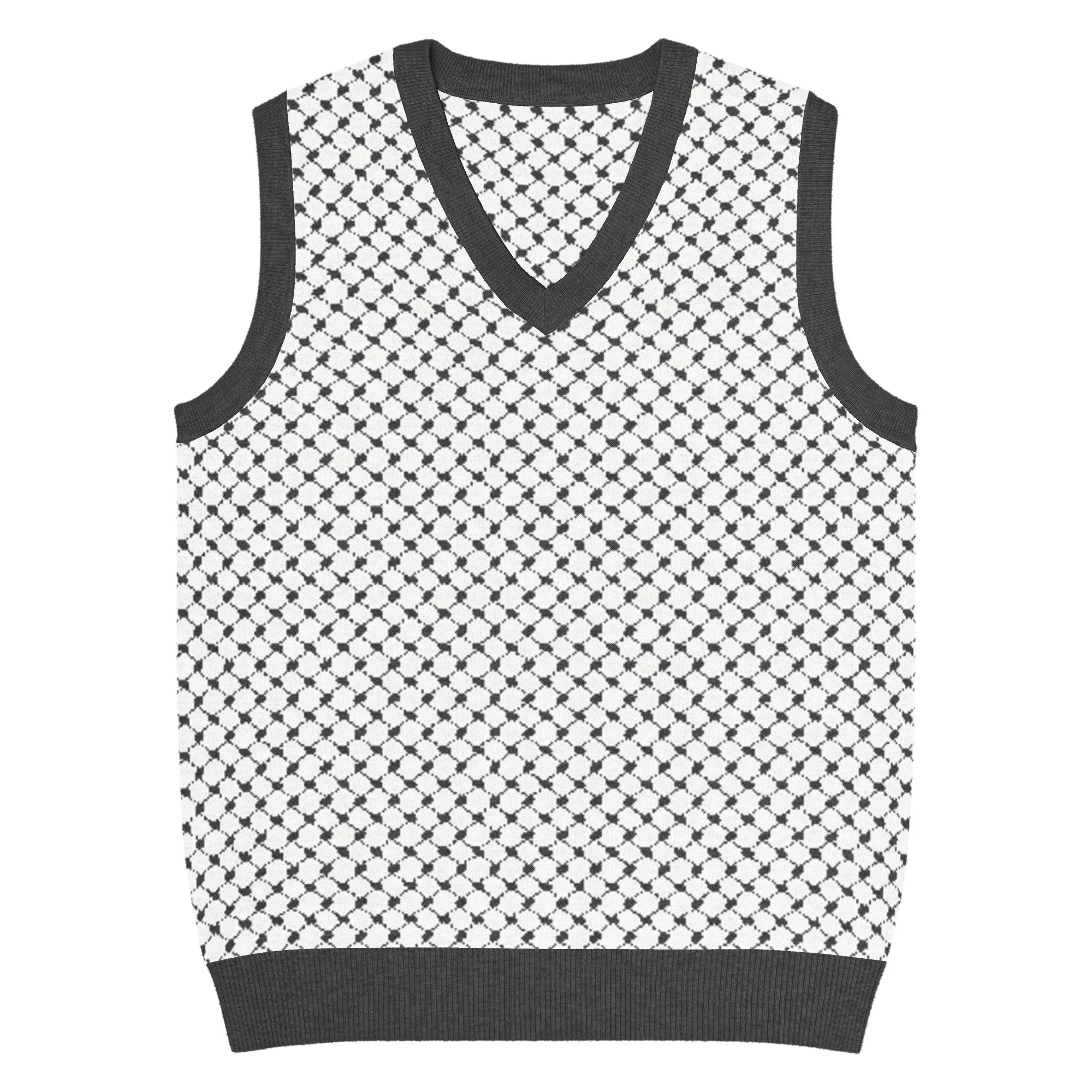 The patterns of a traditional Palestinian headscarf have meaning. The fishnet pattern stands for a connection with the sea, the olive leaves stand for wealth and economy from, among other things olives, and the lines stand for the historical trade route going through Palestine.